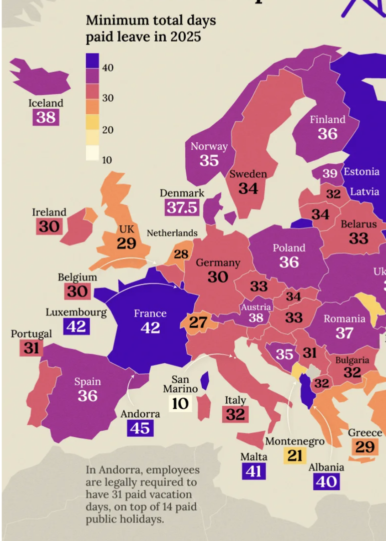 Europa liebt Ferien. Und zwar gesetzlich garantiert. Wer hier arbeitet, bekommt nicht nur Lohn, sondern auch ordentlich freie Tage obendrauf. Eine neue Auswertung für 2025 zeigt, wie groß die Unterschiede zwischen den Ländern sind.