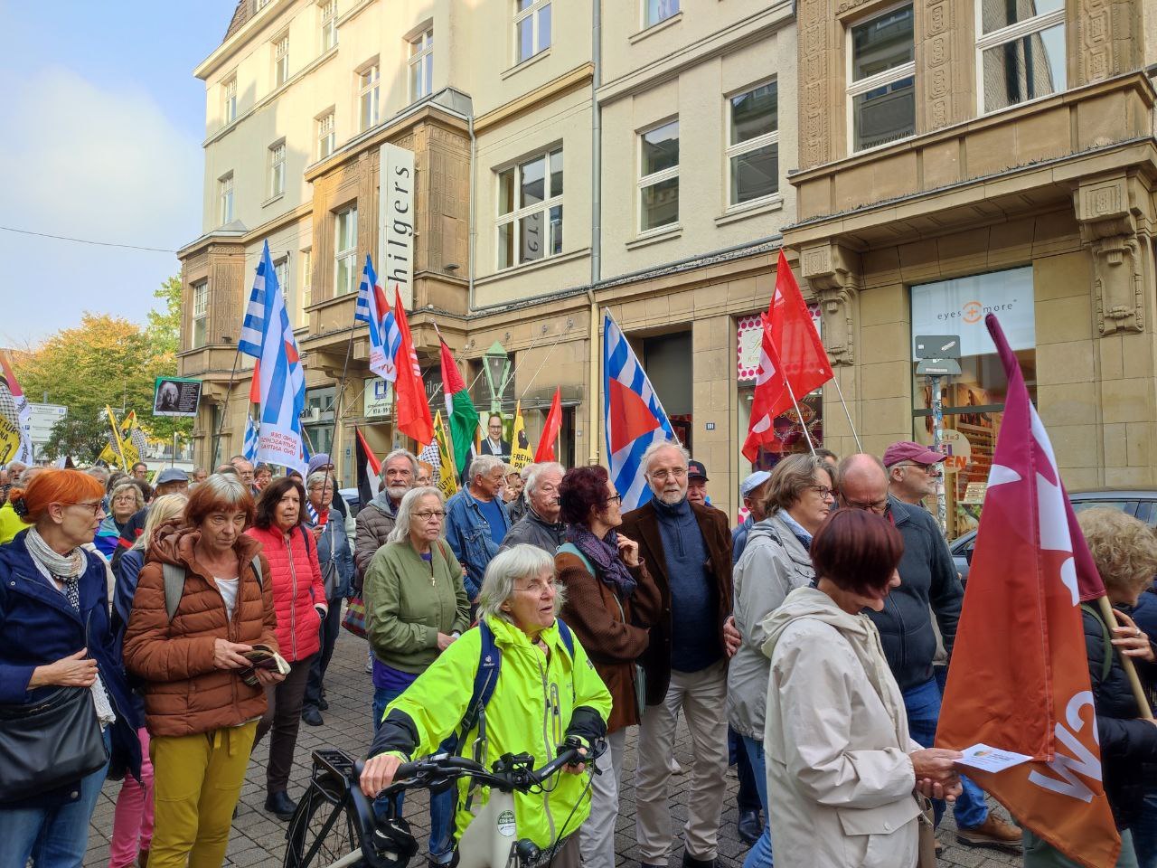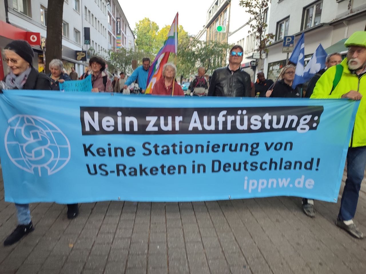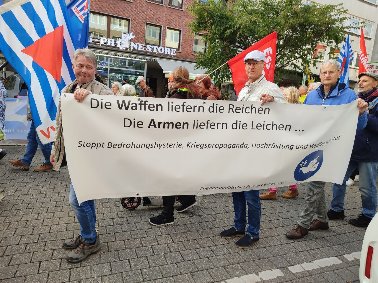 Die VVN-BdA (Verfolgte des Naziregimes – Bund der Antifaschisten), der Kreisverband der Linken, das BSW Essen, Pax Christi, DVG-VK (Deutsche Friedensgesellschaft), IPPNW (Internationale Ärzte gegen Atomkrieg), Erhard-Eppler-Kreis Frieden 2.0 und die Initiative “Wehrhaft ohne Waffen, Modellregion Essen”. Am Protest beteiligte sich außerdem ein Mitglied der Grünen Partei, der für die Initiative “Grüne Alternative” eine Rede hielt.