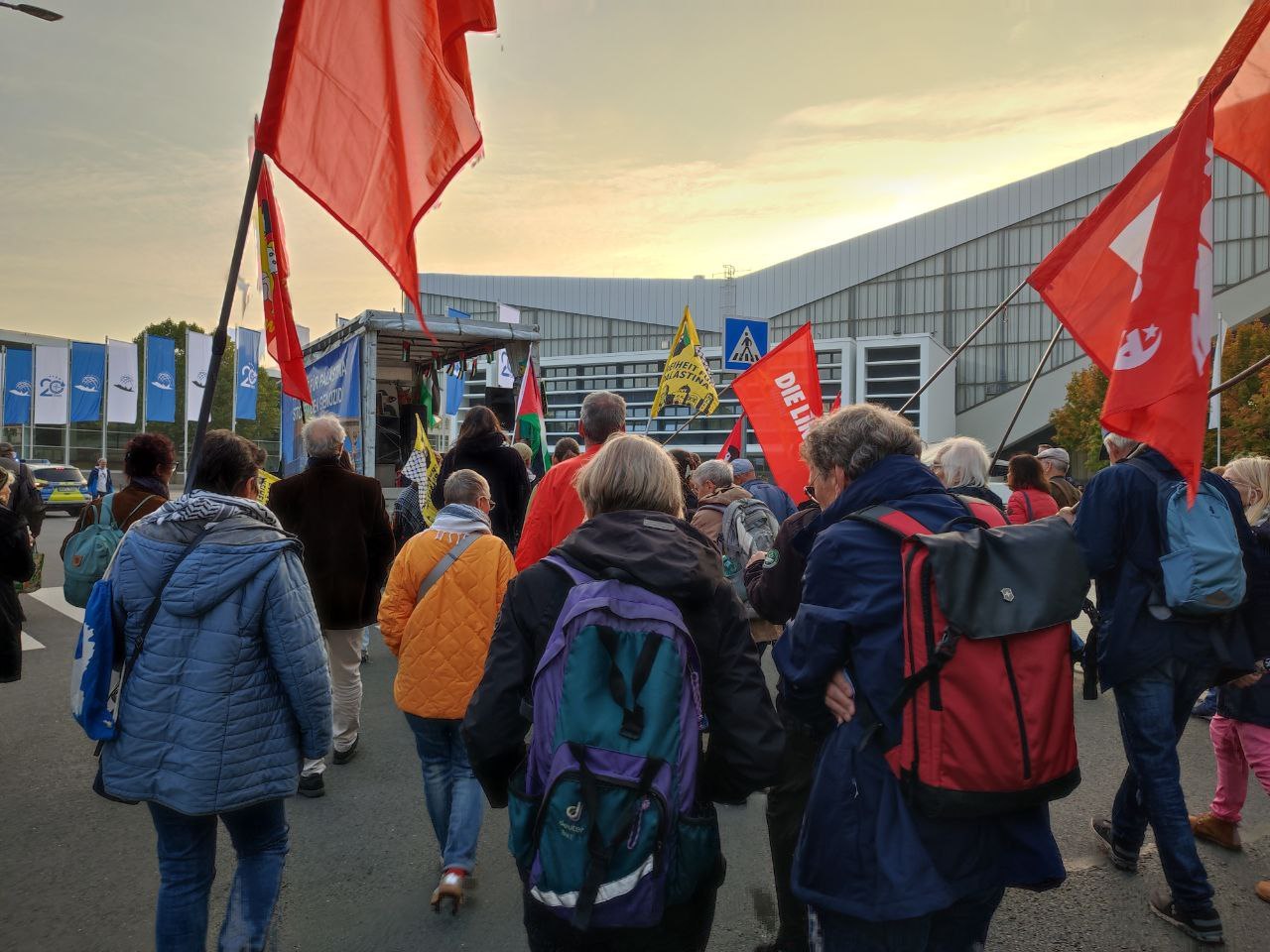 Am Dienstag, zur Eröffnung der NATO-Konferenz, organisierte das Essener Friedensforum eine Protestaktion gegen die JAPCC. Neben dem Friedensforum riefen weitere Organisationen eines “sozialökologischen Friedensbündnisses” dazu auf, sich am Protest gegen die Pläne der internationalen Kriegstüchtigkeits- und Rüstungslobby zu beteiligen.
