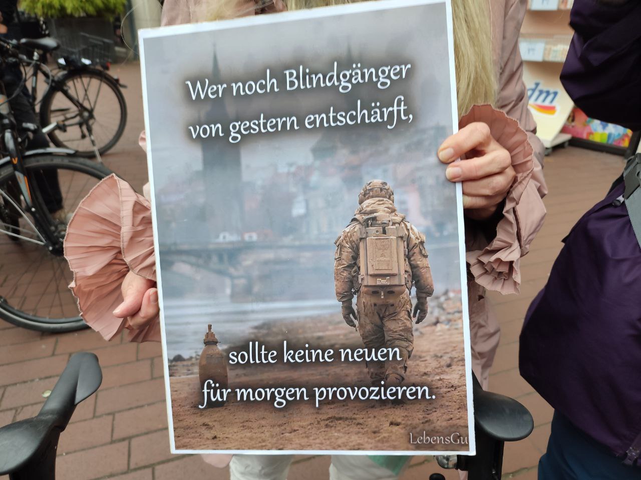 Seit der Gründung der Bundesrepublik bekämen Friedensforscher in Medien und Politik kaum Gehör. Es gebe zahlreiche Vorschläge für Friedensverhandlungen, aber diese seien unerwünscht. Stattdessen behaupteten Politiker, es gebe eine russische Bedrohung, um Panik, Angst und Kriegsbereitschaft in der Bevölkerung zu erzeugen. Dabei könnten sie keine Belege für die angeblich russische Bedrohung vorweisen, erklärte die 82-jährige Friedensaktivistin die aktuelle Propaganda der Kriegstreiber.