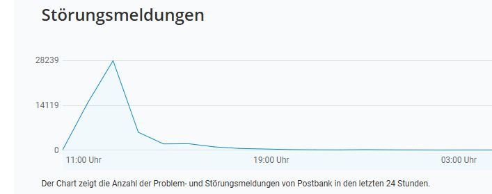 Die Webseite Netzwelt präsentierte dabei eine Grafik, laut der es zuvor gegen 11 Uhr Vormittags bei der Postbank zu insgesamt “28.239 Störungsmeldungen” kam.