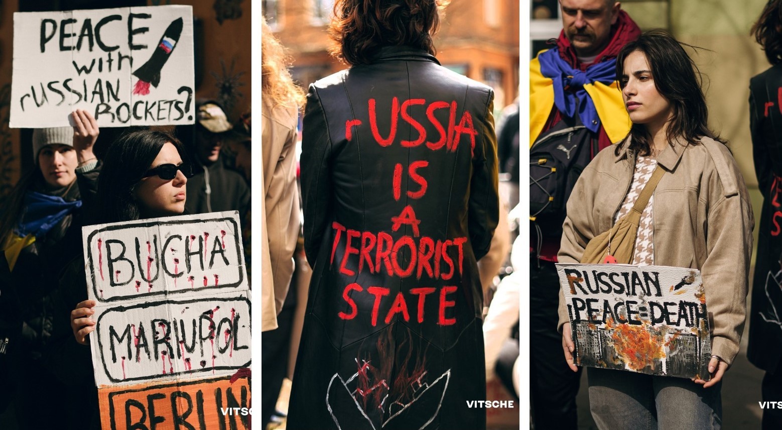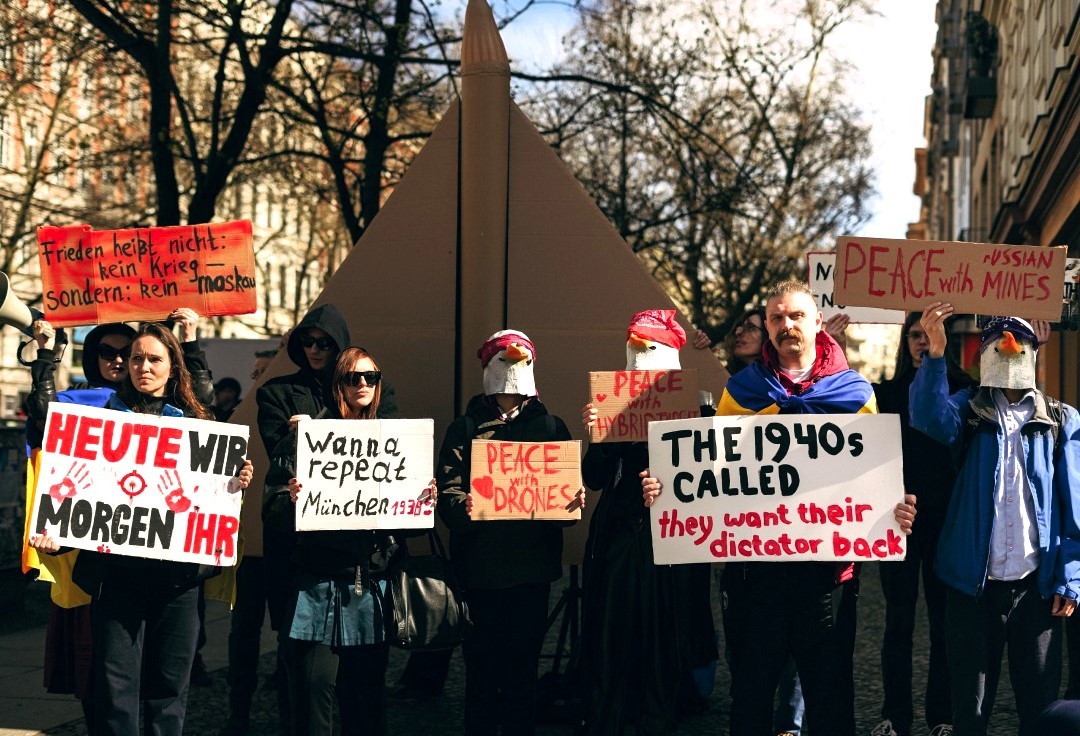 “Als wir Slogans wie ‘Waffen für die Ukraine’ und ‘russland ist ein Terrorstaat’ riefen, reagierten einzelne Teilnehmende des Marsches mit Rufen und obszönen Gesten.”