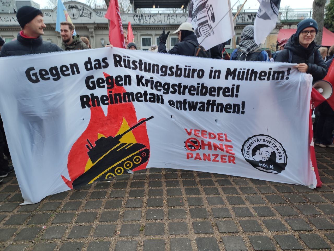 “Wer angesichts der drohenden Kriege behauptet, Frieden und Friedensdiplomatie seien unmöglich, begeht ein Verbrechen. Wir verweigern uns der Militarisierung! Gegen Aufrüstung und gegen Krieg! Wir wollen nicht, dass unsere Kinder und Enkelkinder in einen nächsten Krieg geschickt werden.”
