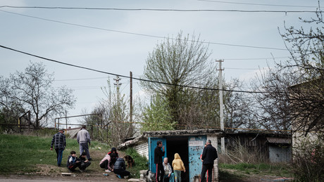 Menschen stehen am 23. April 2022 vor dem Eingang eines Bunkers in Lissitschansk, Lugansker VolksrepublikYasuyoshi CHIBA / AFP / AFP Die russische Nachrichtenagentur RIA Nowosti berichtet unter Berufung auf das russische Verteidigungsministerium, dass ukrainische und britische Geheimdienste eine Provokation in Lissitschansk planen würden.