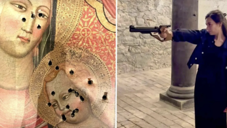 Hintergrund ist ein Instagram-Post aus dem September 2024, der landesweit Empörung auslöste. Darin zeigt Ameti, wie sie mit einer Druckluftpistole auf ein Bild der Jungfrau Maria und des Jesuskindes schießt. Die meisten Einschüsse treffen die Gesichter der Figuren.