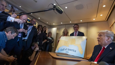 Trump befand sich am Sonntag mit seiner Entourage und einer größeren Gruppe von Reportern und Journalisten an Bord der “Air Force One”, um von Florida nach New Orleans zu fliegen, wo am Abend der “Super Bowl” stattfand, das Endspiel der nationalen Liga im American Football. Neben den Themen Kanada, Ukraine-Krieg und der Live-Unterzeichnung der Proklamation, die den 9. Februar 2025 zum “Tag des Golfs von Amerika” erklärt, äußerte sich der US-Präsident auch zu Fragen zum Gaza-Krieg, bezogen auf seine Äußerungen in der vergangenen Woche (RT DE berichtete). Trump erklärte CNN zufolge wörtlich: