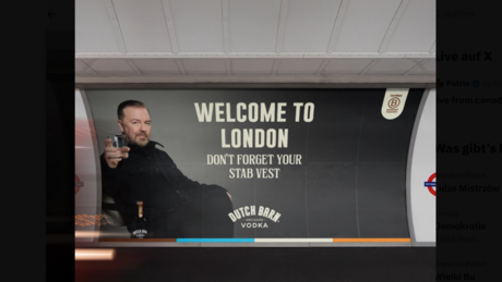Messerkriminalität ist ein Problem in Westeuropa. Darauf reagierte der britische Komiker Ricky Gervais mit einer Werbekampagne, die das Problem aufnimmt. Gervais bewirbt dabei Wodka. Die Plakate zeigen Gervais mit einem Glas Wodka. Unterschrieben sind die Bilder mit dem Slogan “Welcome to London – Don’t forget your stab vest”; in Deutsch: “Willkommen in London – Vergessen Sie Ihre Stichschutzweste nicht”.
