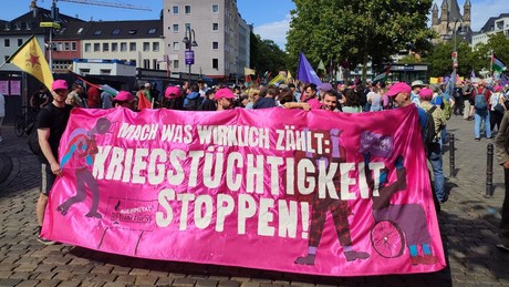 Im Dezember letzten Jahres gründete sich aus Anlass der Wiedereinführung der Wehrpflicht in Köln die Initiative “Aufruf 70 + – Gegen Militarisierung und Kriegsdienst!” Dem Netzwerk haben sich mittlerweile rund 180 Senioren und Seniorinnen angeschlossen. Am Dienstag veranstaltete die Initiative “Aufruf 70 +” in Kooperation mit der DFG-VK (Deutsche Friedensgesellschaft / Vereinigte Kriegsgegner) im Kölner Allerweltshaus eine öffentliche Veranstaltung zum Thema Kriegsdienstverweigerung: “Gegen den neuen Kriegsdienst: Wie verweigern und warum?” Im zweiten Teil der Veranstaltung ging es zudem um Aktionsplanung für den kommenden Schulstreiktag gegen die Wehrpflicht, der deutschlandweit am kommenden Donnerstag, den 5. März stattfindet.