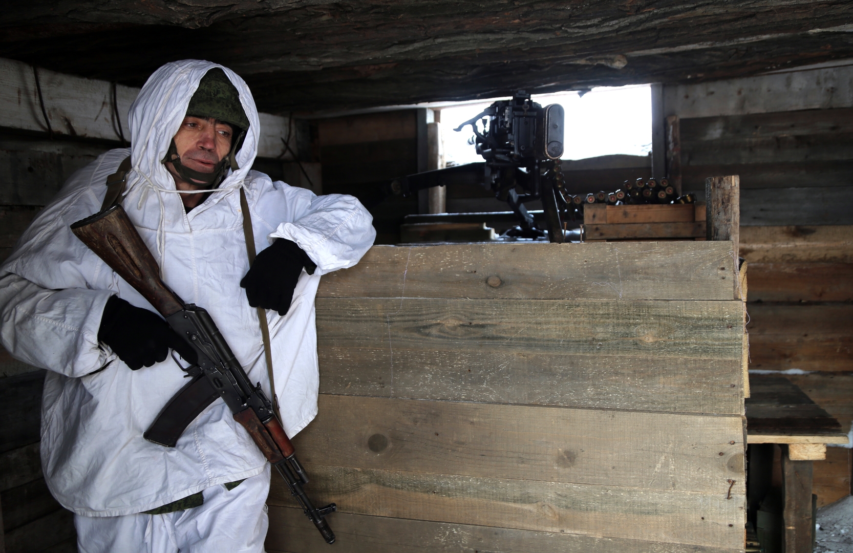 Wenn es die Lage zulässt, bauen die Soldaten ihre Stellungen weiter aus. Die Schützengräben werden mit Brettern ausgekleidet, um das Problem der Verschmutzung in den Gräben zu lösen. Im Inneren werden Bunker mit drei Lagen Baumstämmen errichtet. Darin ist es selbst bei bitterster Kälte warm – es gibt einen Ofen, und die Wände sind zur Wärmedämmung mit Teppichen verhängt. Hier kann man sich immer aufwärmen, heißen Tee trinken und sich nach dem Nachtdienst ausruhen.